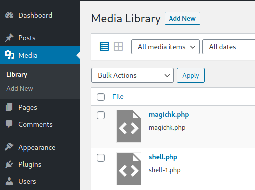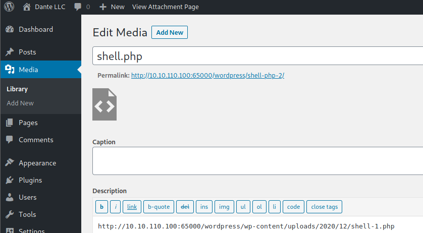Probably this won't do anything apparently, but if you go to Media, you will see your shell uploaded:
